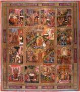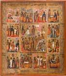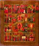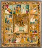 AN ICON SHOWING THE DESCENT INTO HELL AND TWELVE MAJOR FEASTS