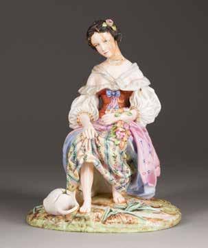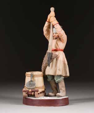 Porzellan, polychrome Aufglasurbemalung, Vergoldung. H. 32,4 cm. Vergoldung min. berieben.