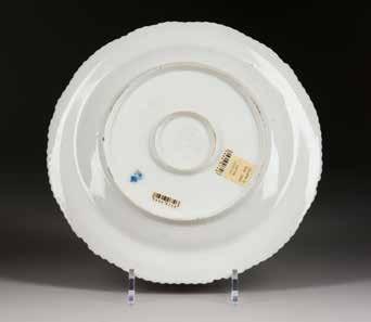 Porzellan, polychrome Aufglasurbemalung, Goldstaffage. D. 24,5 cm. Unterglasurblaue Manufakturmarke ‚EII‘. Restauriert.