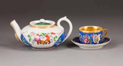 A PORCELAIN CUP UND A SAUCER WITH A TEAPOT