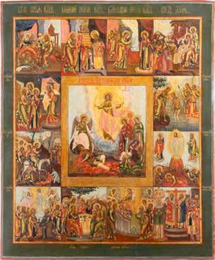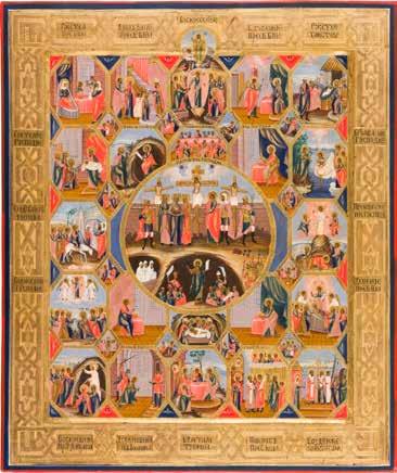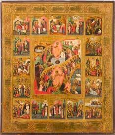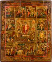 AN ICON OF THE RESURRECTION AND DESCENT WITH TWELVE MAJOR FEASTS