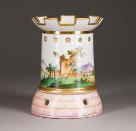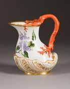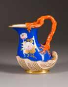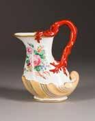 Porzellan, polychrome Aufglasurbemalung, Goldstaffage.
