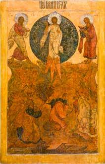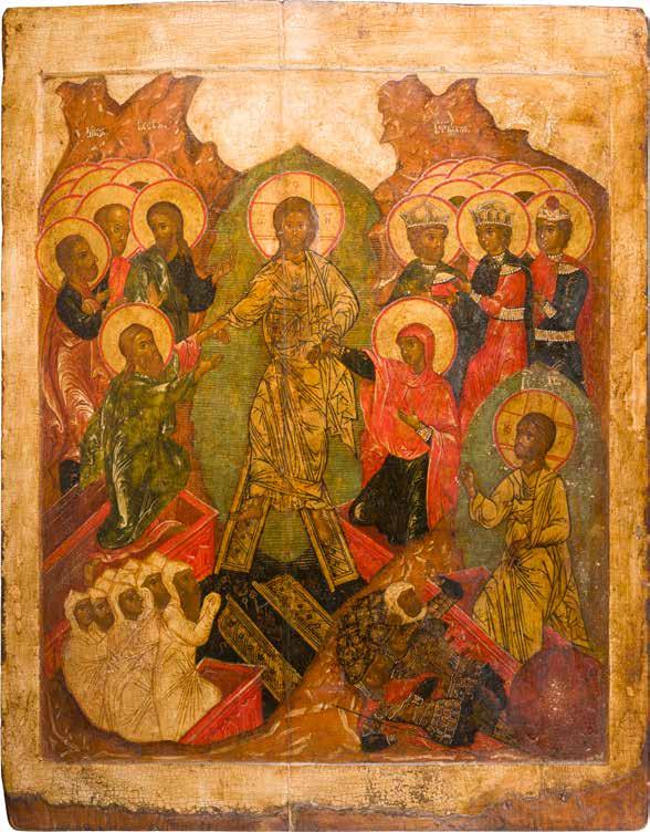 A LARGE ICON OF THE RESURRECTION OF CHRIST AND THE DESCENT INTO HELL AND THE MAJOR LITURGICAL FEASTS