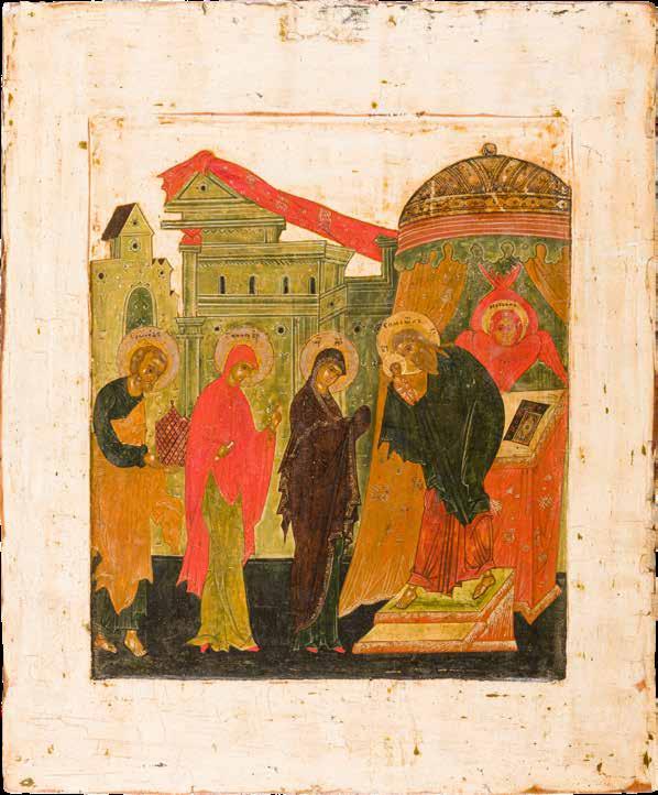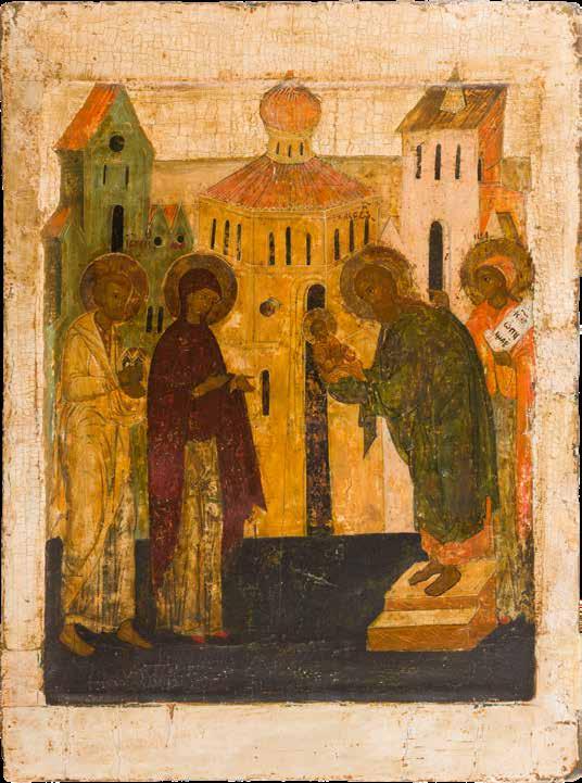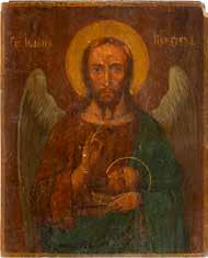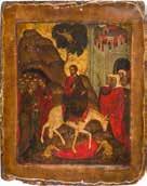 Russian, late 18th century Tempera on wood panel. The background stripped to gesso, partially restored. 110.6 x 69.5 cm. € 9.000,-