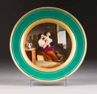 A PORCELAIN PLATE WITH AN IMAGE OF A MOTHER WITH A CHILD