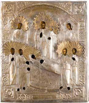 Expertise: Ikonenmuseum Schloss Autenried bei Günzburg/Donau. THE MOTHER OF GOD FROM A DORMITION WITH EMBROIDERED OKLAD