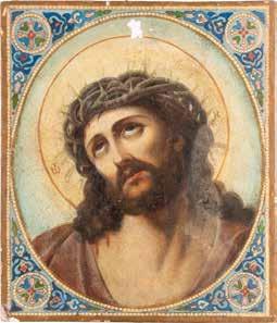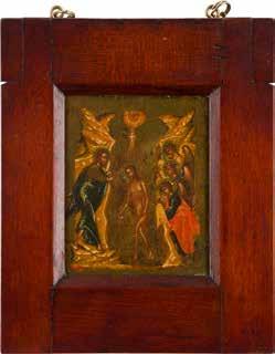 Oil on wood panel. The border emulating contemporary enamelled decoration. Restorations. 30.7 x 26 cm.