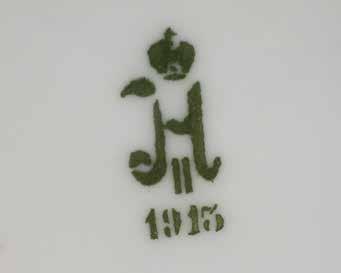 Porzellan, Aufglasurbemalung, Goldstaffage. D. 23,1 cm. Auf der Unterseite Pressmarke ‚ma‘. Vergoldung min. berieben.