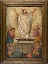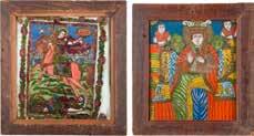 Holztafeln, Eitempera auf Kreidegrund, partielle Vergoldung. 31,8 x 26,6 cm / 30,4 x 22,8 cm. Substanzverluste, rest.