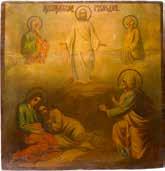 Tempera on wood panel with double kovcheg. The background made of silver, covered by a golden lacquer. Minimally restored. 31 x 26.5 cm.