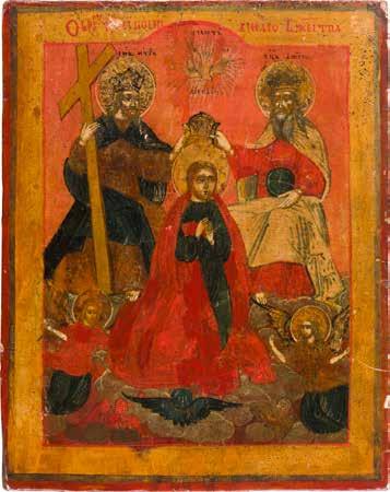 A VERY FINE ICON SHOWING THE CORONATION OF THE MOTHER OF GOD