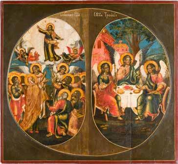 823 | MONUMENTALE IKONE MIT DER ASSUMPTIO DER GOTTESMUTTER UND EINEM CHERUB AUS EINER KIRCHEN-IKONOSTASE
