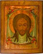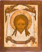 Tempera on wood panel with kovcheg. The haloes and background made of gold. Partially restored. 35.5 x 30.7 cm.