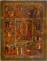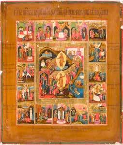 808 | SELTENE FESTTAGSIKONE MIT DER GOTTESMUTTER ‚UNVERBRENNBARER DORNBUSCH‘ UND DEN FÜNF