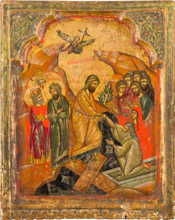 825 | GROSSFORMATIGE IKONE MIT DER ERHÖHUNG DES WAHREN KREUZES AUS EINER KIRCHEN-IKONOSTASE