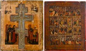 AN ICON SHOWING THE EXALTATION OF THE TRUE CROSS Russian, late 19th century