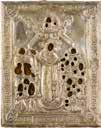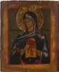 Einzeltafel. Eitempera auf Kreidegrund, Hintergrund versilbert und goldfarben lasiert. 31,7 x 23 cm. Kanten teils best., partiell rest.
