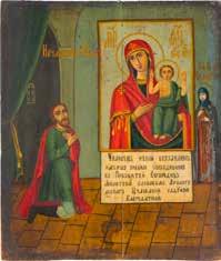 A SMALL ICON SHOWING THE SWEET-KISSING OF THE MOTHER OF GOD