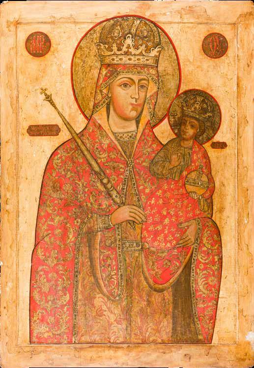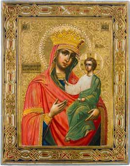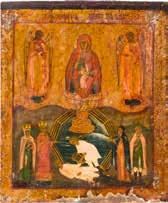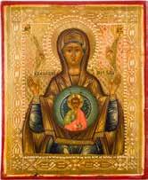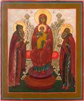 A FINE ICON OF THE ENTHRONED MOTHER OF GOD