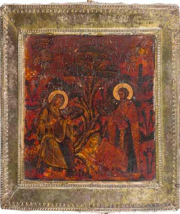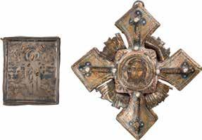 A particular highlight is the remarkably rich offering of icons, among which rare and finely executed works from the 15th and early 16th centuries stand out. Among the most significant examples is an icon depicting Saints Athanasius the Great and Cyril of Alexandria, worthy of any major museum collection. The liturgical vestments, adorned with black crosses on a white ground, seem in a striking way to anticipate Malevich’s Black Square by several centuries – or might icons such as this even have served as a source of inspiration for the artist?