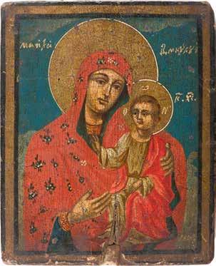 A SMALL ICON SHOWING THE HODIGITRIA MOTHER OF GOD
