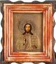 Tempera on wood panel. The frame carved with eagles amd columns. On gold ground. Minimally restored, minor losses. 44.5 x 30 cm.