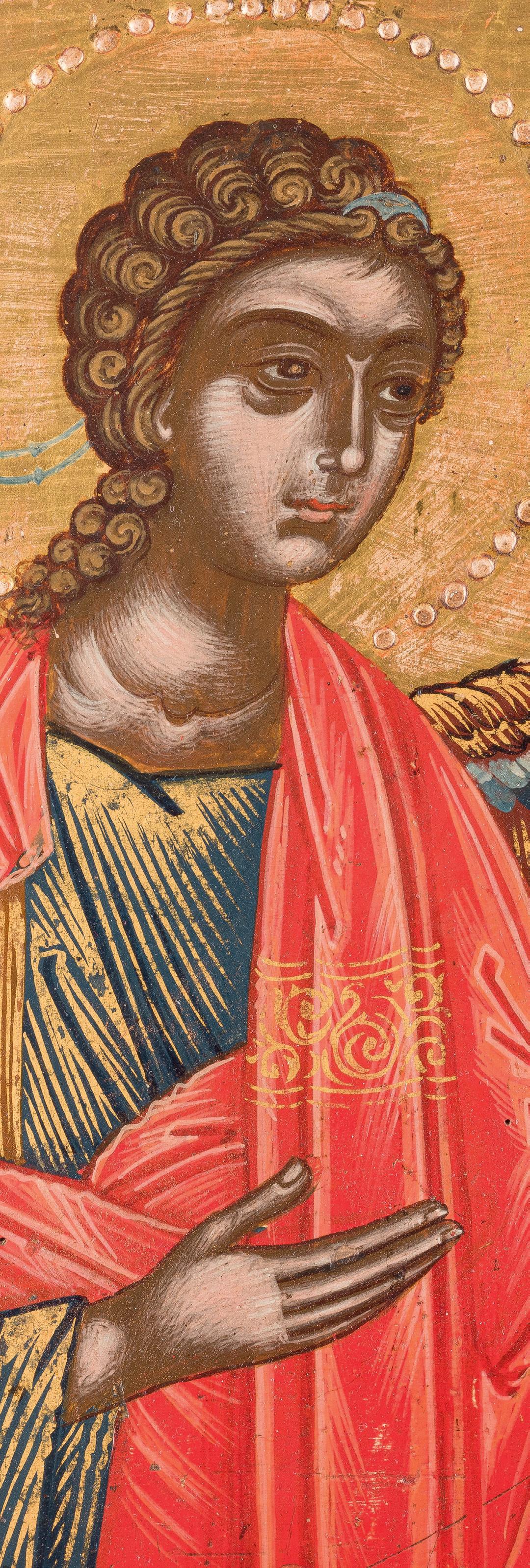 Oil on wood panel. Finely painted in bright colours on a gold ground. Inscribed in Greek, signed and dated along the lower edge. Vertical crack minimally restored. 48 x 39.8 cm (with frame).