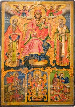 A MONUMENTAL ICON SHOWING THE ENTHRONED MOTHER OF GOD