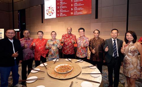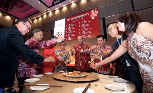 A highlight of the celebration was the traditional yee sang tossing ceremony. Guests tossed the colourful mixture of ingredients high into the air while exchanging wellwishes for prosperity, success and happiness.