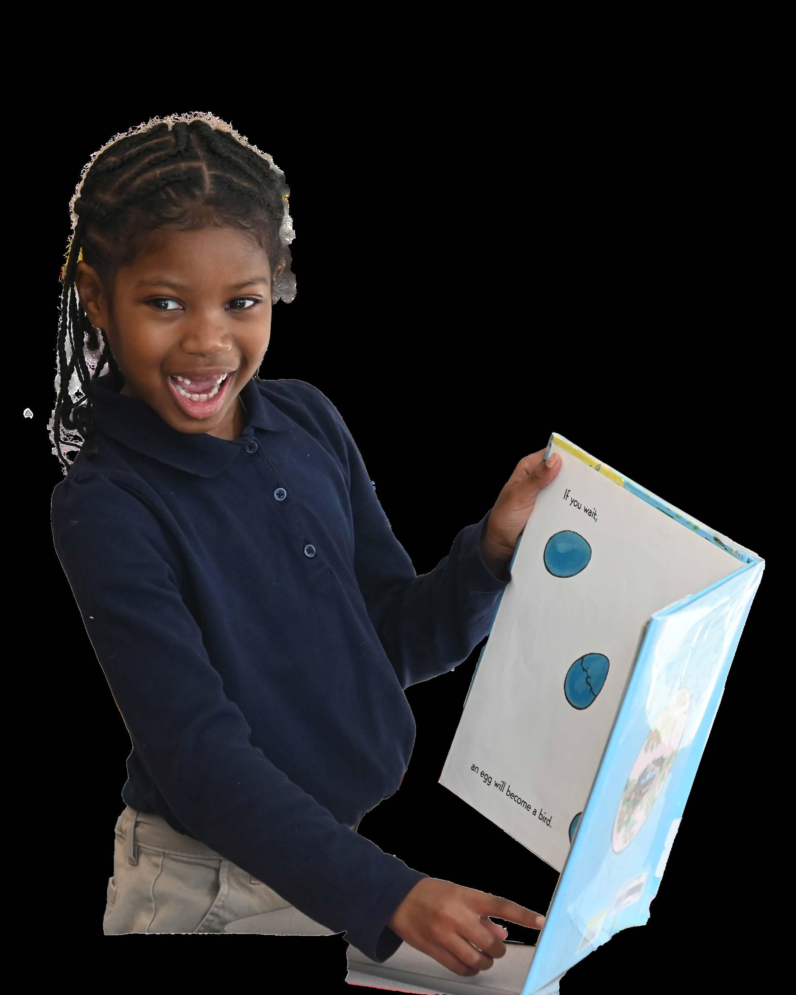 Our program includes fiction and nonfiction reading, writing, vocabulary, grammar, and phonics within integrated units. Students learn how to communicate effectively not only through writing and their first experiences with public speaking but also by developing the important skills of active listening and problem-solving. Daily read-alouds connect to our School Creed, prompt wholeclass discussions, or just bring smiles to students’ faces. Students visit the library each week to find independent reading books with the help of their classroom teacher.