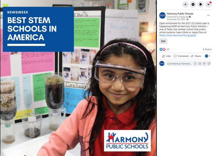Harmony Public Schools is a statewide system of Texas public charter schools that provides rigorous, high-quality education focused on Science, Technology, Engineering, and Math