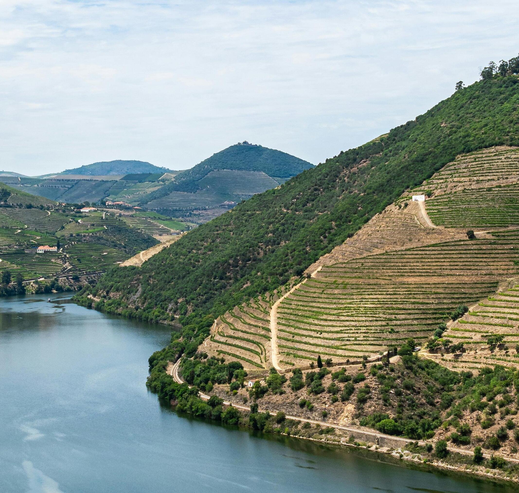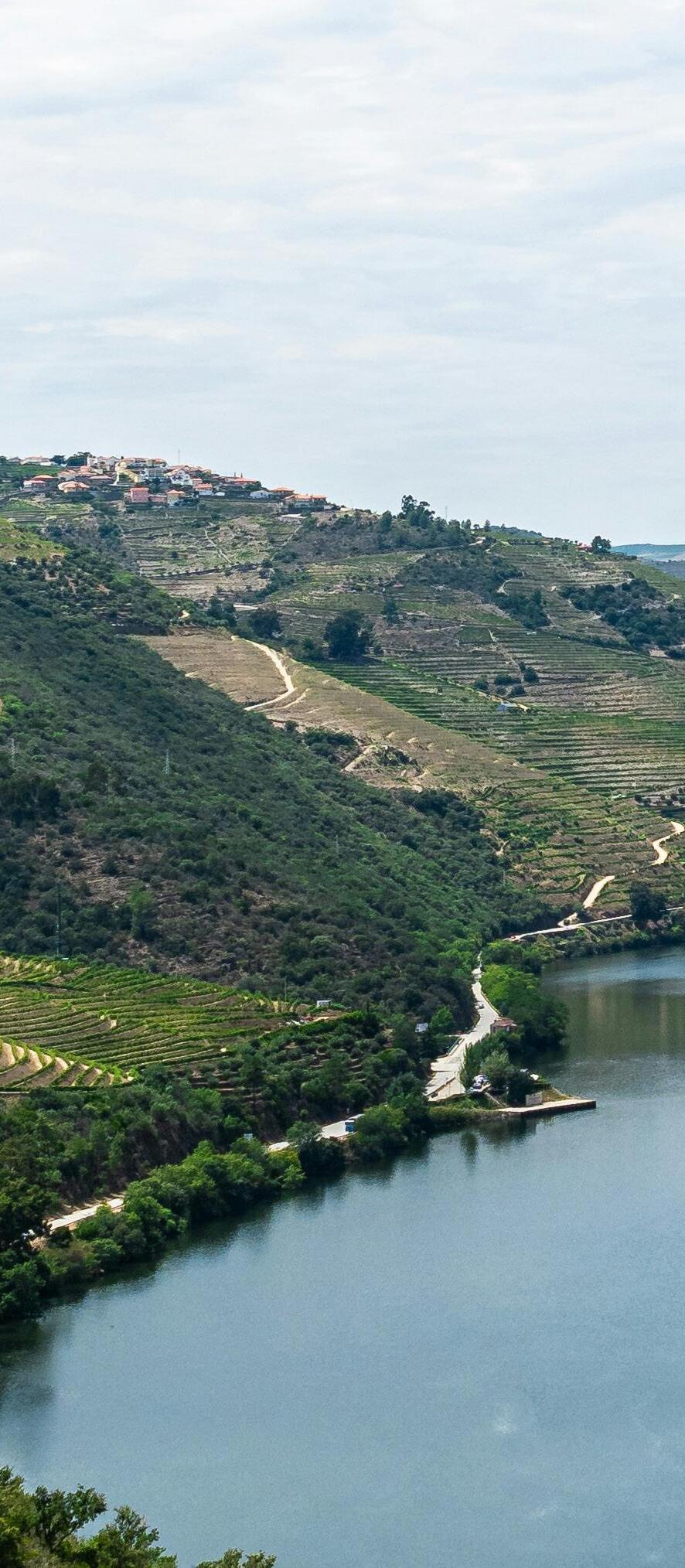 The Douro forms part of the border between Portugal and Spain and is 560 miles long in total, with the navigable section being 130 miles, from Porto to the Spanish border The scenery is lush and unspoilt with medieval villages peppering the spectacular countryside, and grapes, olives and almonds growing in the fields as far as the eye can see.