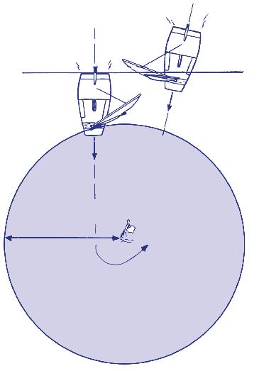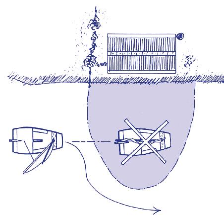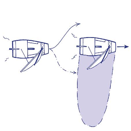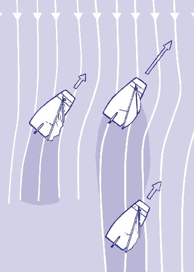 Als het kan moet je om de luwte heen varen (zie tekeningen).