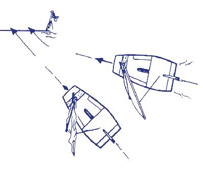 • Bij het naderen van de startlijn om te starten heeft een loefwaartse boot bij de startboei geen recht op ruimte van de lijwaartse boot (niet indringen).