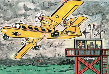 Van groot belang bij het naoorlogse herstel van Alderney was de succesvolle introductie, in 1968, van een eigen airborne bus service: de gele vliegtuigjes van Aurigny Air Service. Sindsdien zijn er miljoenen passagiers vervoerd. Doordat het bedrijf intussen verschillende sponsors heeft, hebben de machines overigens niet allemaal meer de vertrouwde gele kleur. Het grootste vliegtuig kan maximaal 122 passagiers vervoeren. Spannend is vooral een vlucht met een Dornier (rond de 18 passagiers): wie voorin zit, kan over de schouder van de piloot meekijken. Zonder zelf al gevlogen te hebben, kunnen de kinderen van de Kanaaleilanden trouwens meestal uitstekend vertellen hoe leuk het is. Een van de gele vliegtuigjes, ‘Joey’, is namelijk hoofdpersoon in een serie grappig geschreven en getekende kinderboekjes.