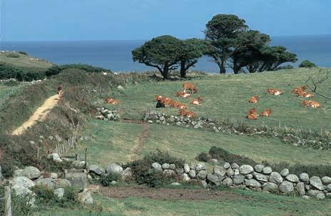 ‘Au rocher d’hospitalité et de liberté, à ce coin de vieille terre Normande où vit le noble petit peuple de la mer, à l’isle de Guernesey, sévère et douce.’ (Aan deze rots van gastvrijheid en vrijheid, deze hoek van oude Normandische grond, waar het edele kleine zeevolk leeft, aan het eiland Guernsey, streng en zachtmoedig). Dit is de opdracht die Victor Hugo in zijn Les Travailleurs de la mer (1866) schreef. Diezelfde woorden zijn ook te lezen op het standbeeld van Hugo, dat in de Candie Gardens staat. Leunend op een stok en met een wapperende mantel kijkt hij uit over St. Peter Port, waar hij 15 jaar lang, van 1855 tot 1870, als balling woonde. Streng en zachtmoedig, twee woorden die met een beetje fantasie ook het landschap van Guernsey, het meest westelijk gelegen Kanaaleiland, aardig typeren. ‘Streng’ is de grillige zuidkust, waar de steile kliffen oplopen tot 80 m hoogte. Zacht(moedig) is een passend predikaat voor de zachtglooiende valleien in het binnenland, met lommerrijke weggetjes, glinsterende beekjes en, in het seizoen, kleurige bloemen.