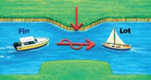 9. Twee kleine schepen naderen elkaar bij een engte. Klein motorschip Fin vaart voor stroom. Klein zeilschip Lot zeilt over bakboordsboeg. Gelijktijdige doorvaart is niet mogelijk (zie plaatje). Regelt het BPR dit? Zo ja, hoe?