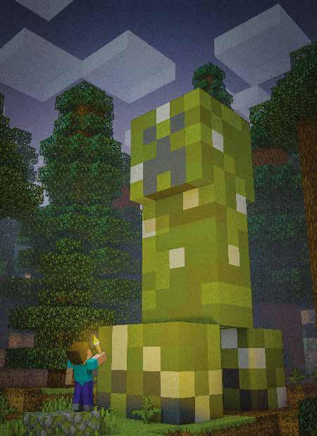 Met standaardvormen kun je een heleboel indrukwekkende structuren bouwen. Hier zie je hoe je met een combinatie van vierkante en rechthoekige vormen een klassieke mob ontwerpt: de creeper. Laat binnendringende mobs maar eens zien dat je helemaal niet bang voor ze bent!