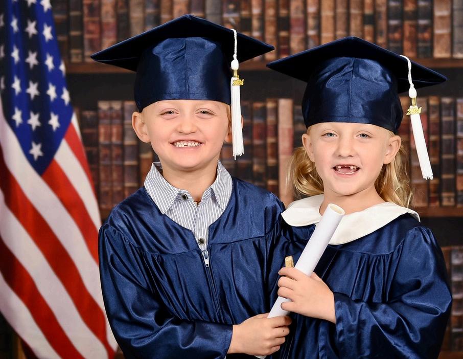 Upper left: BrooklynHughes, kindergarten graduate. Upper right, BraxtonHughes, elementary graduate, children of Cassidy and Rachel Hughes.