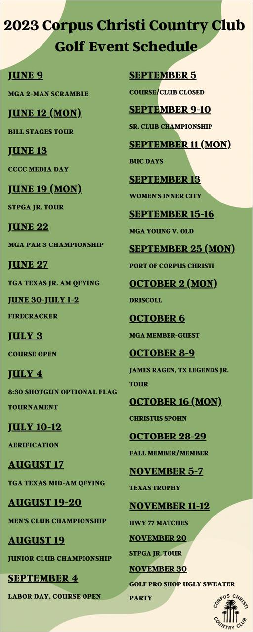 O: 361.991.3634 C: 870.270.9963 www.cccountryclub.com 361.991.2811 Follow us on Social Media @CCCountryClub