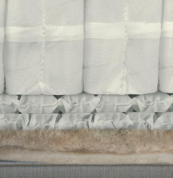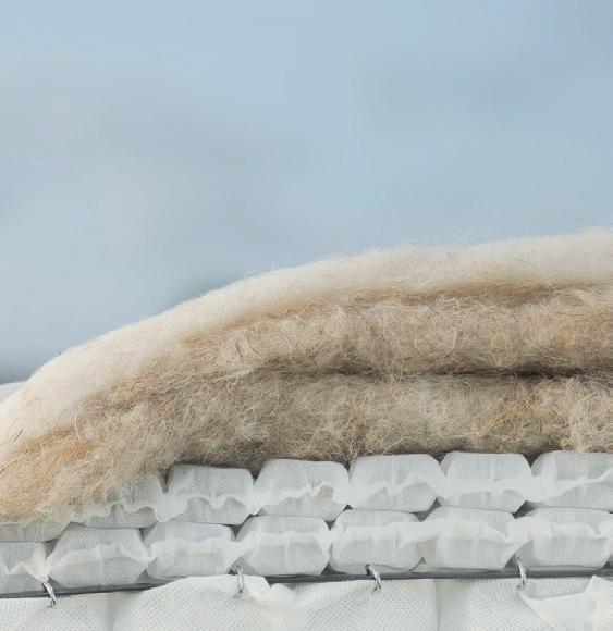 It starts with a healthy and natural sleep surface. The wool-rich, FR chemical treatment-free FabrisafeTM mattress fabric creates the first layer of breathability. Woven by us to make the most out of the natural heat and moisture regulating properties of wool.