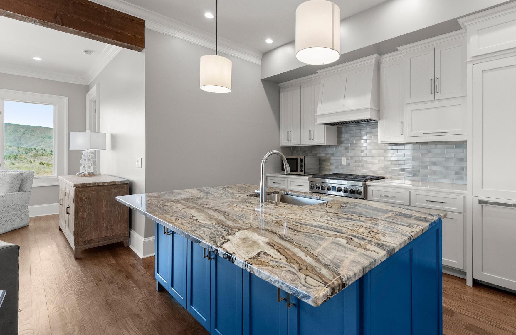 The owner’s suite elevates luxury further with a spainspired bathroom featuring marble tile and a beautiful soaking tub room with a view overlooking the mountains.