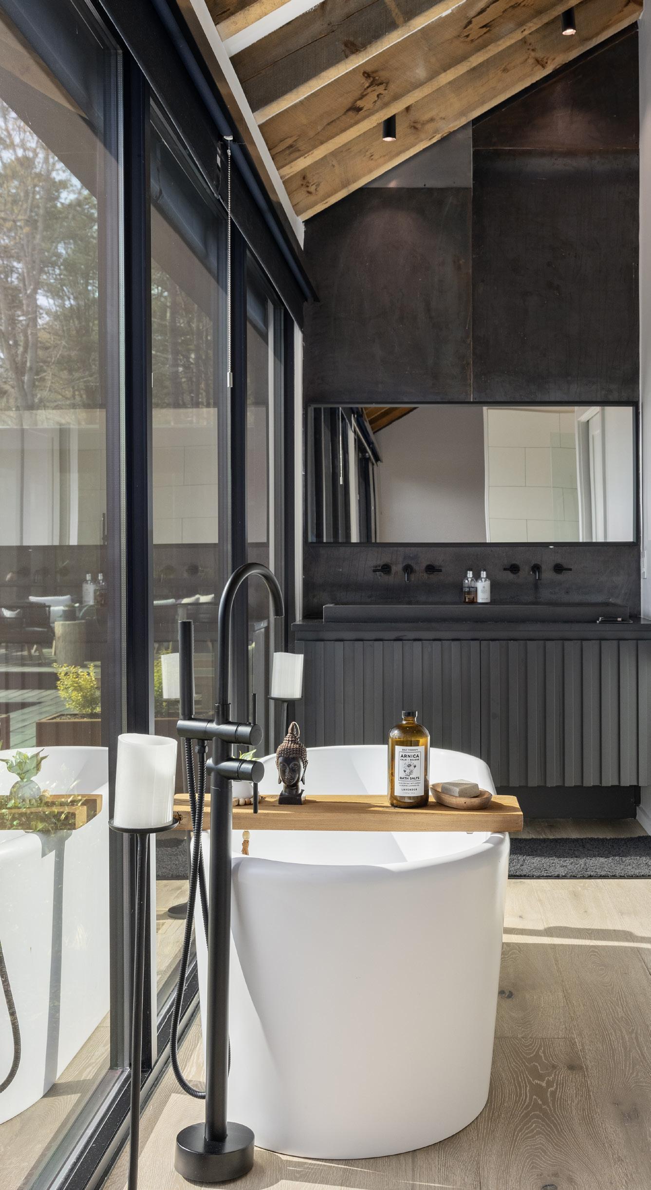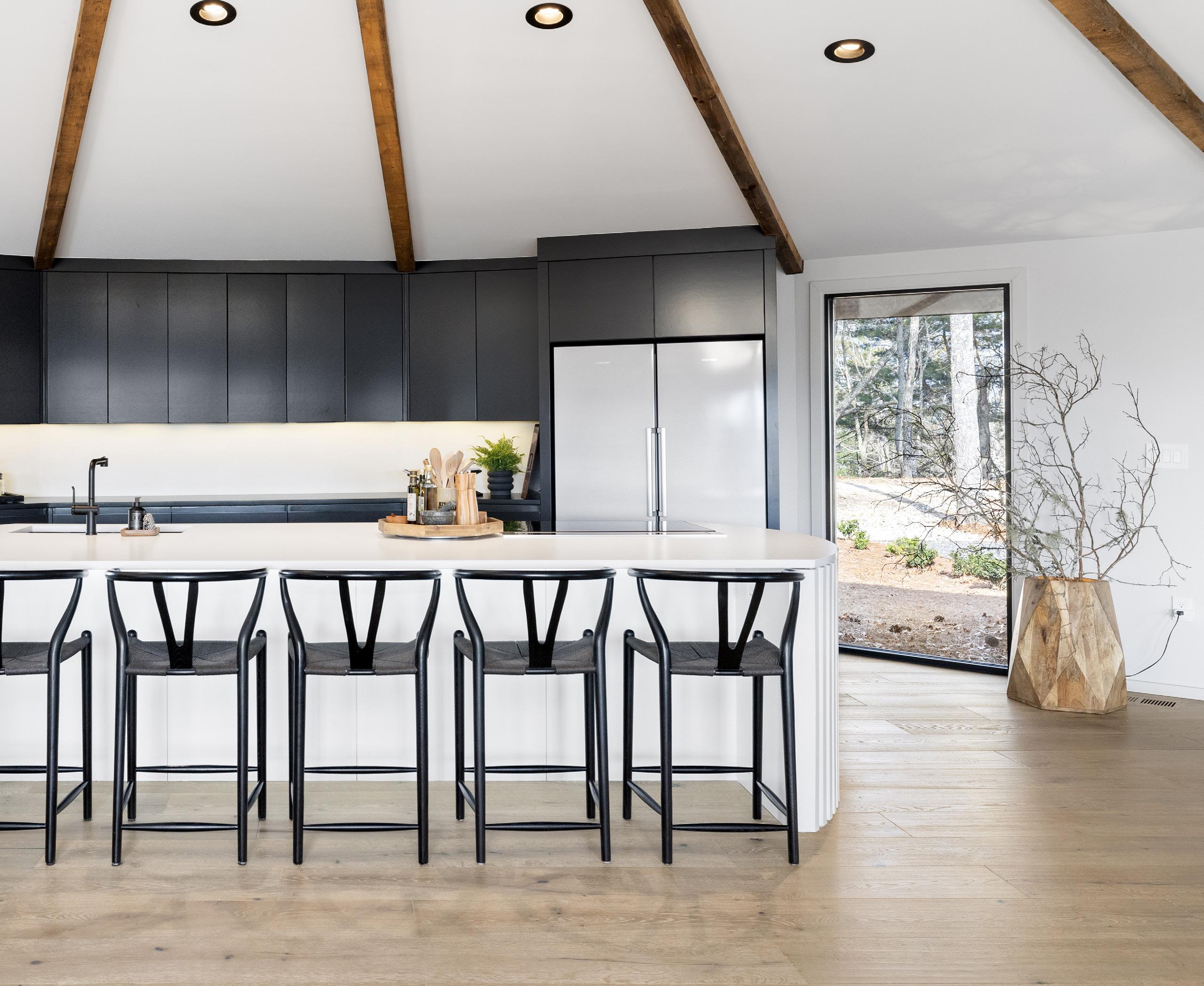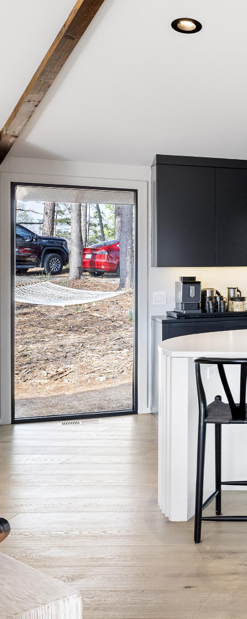 exquisite design details throughout, from luxe minimalist fixtures to vaulted beam ceilings and custom fluted wood features. Cozy up by the dual wood/gas burning fireplace, unwind on private decks, and explore the surrounding wilderness, all while enjoying modern conveniences like smart lighting, programmable window shades, and a double underground garage with ample storage.