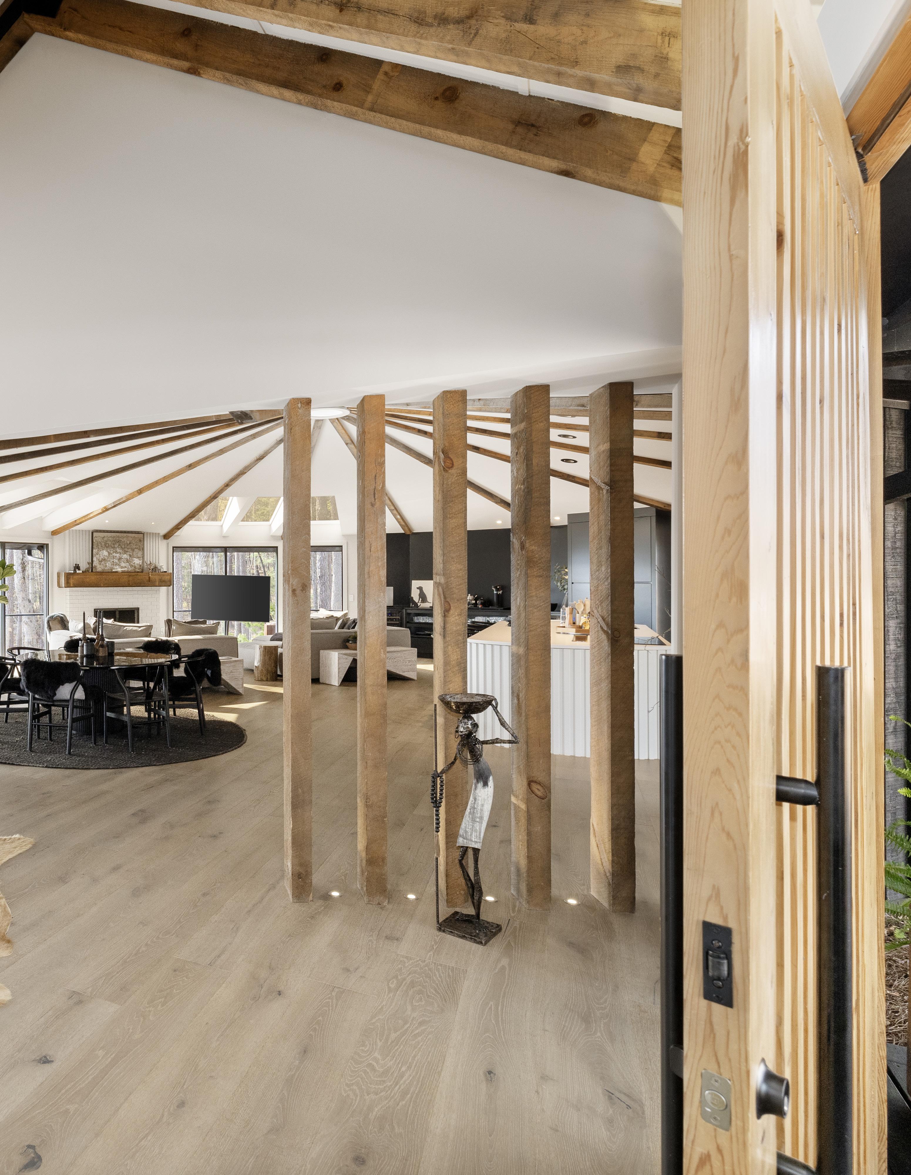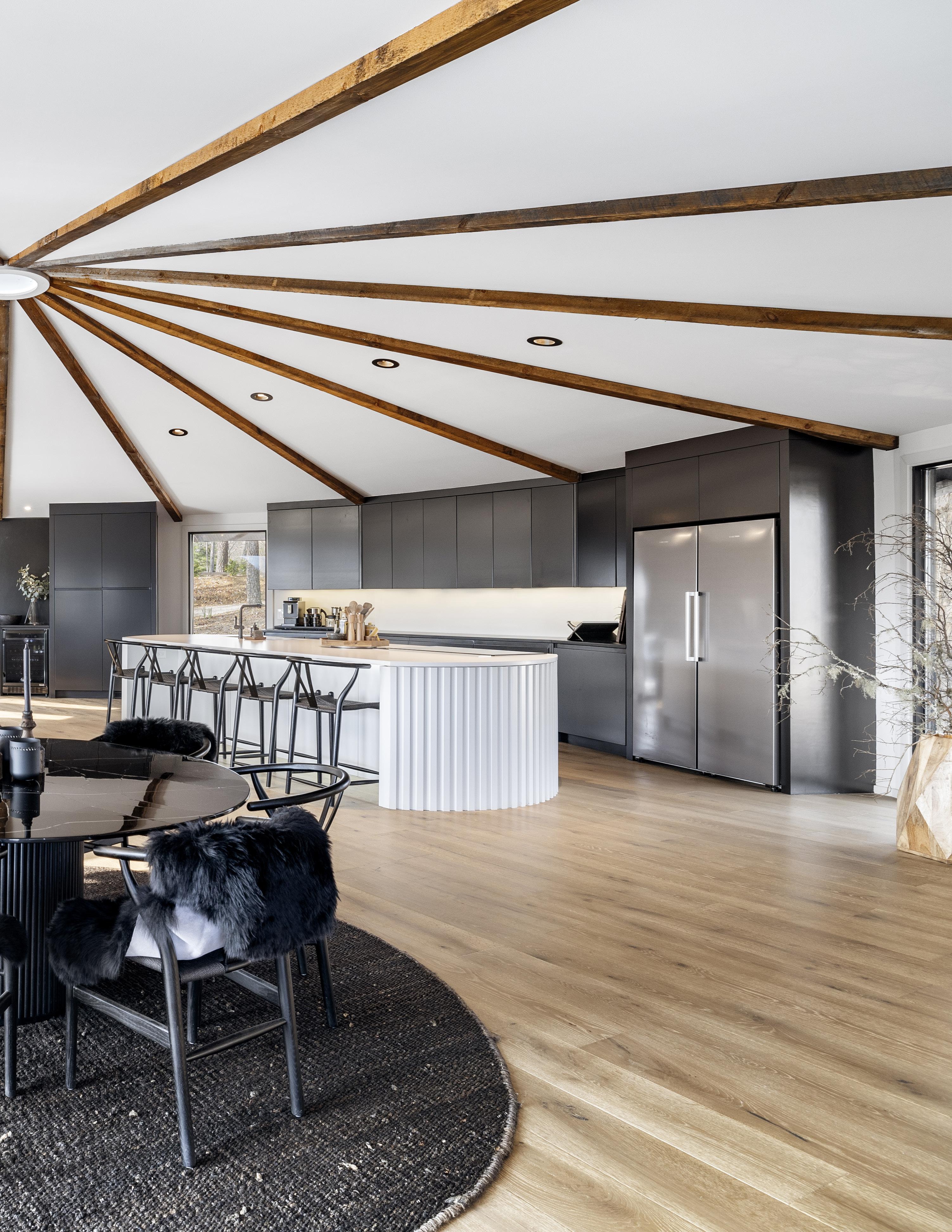 harmoniously merges contemporary opulence with the splendor of nature. Initially modeled after the circular layout of a traditional yurt, the home underwent a perfectly executed transformation to maximize its connection to the surrounding landscape. The result is a seamless integration of architecture and scenery, where each room boasts panoramic views of the rugged peaks and the captivating play of light during sunrise and sunset.