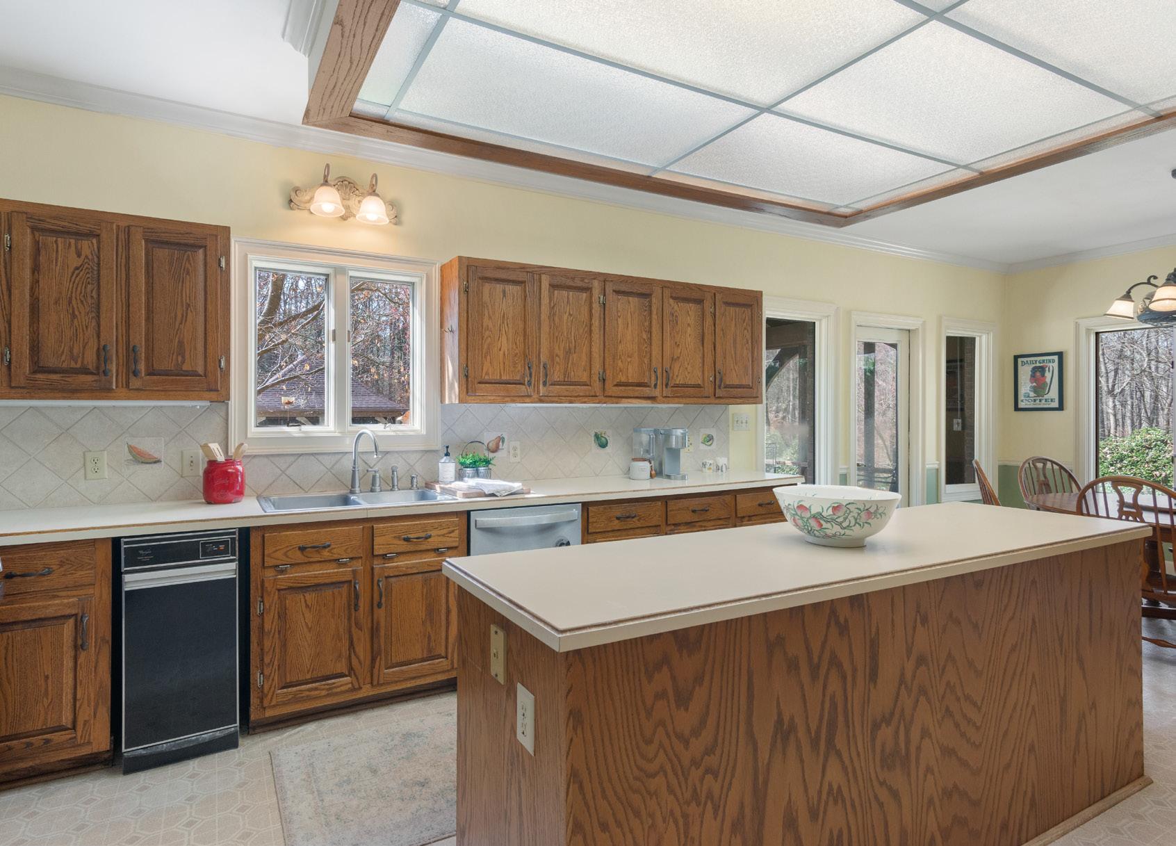 The separate wing includes a charming 2-bed, 2-bath in-law suite complete with its own full kitchen, breakfast area, living room, a screened porch, and convenient access to the expansive daylight terrace level.