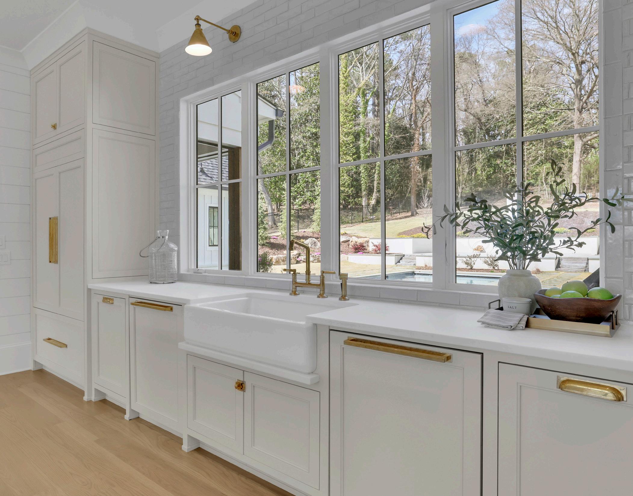 boasts a Thassos marble island, Keystone Millworks cabinetry, a Provence blue La Cornue range, and a hidden coffee station.