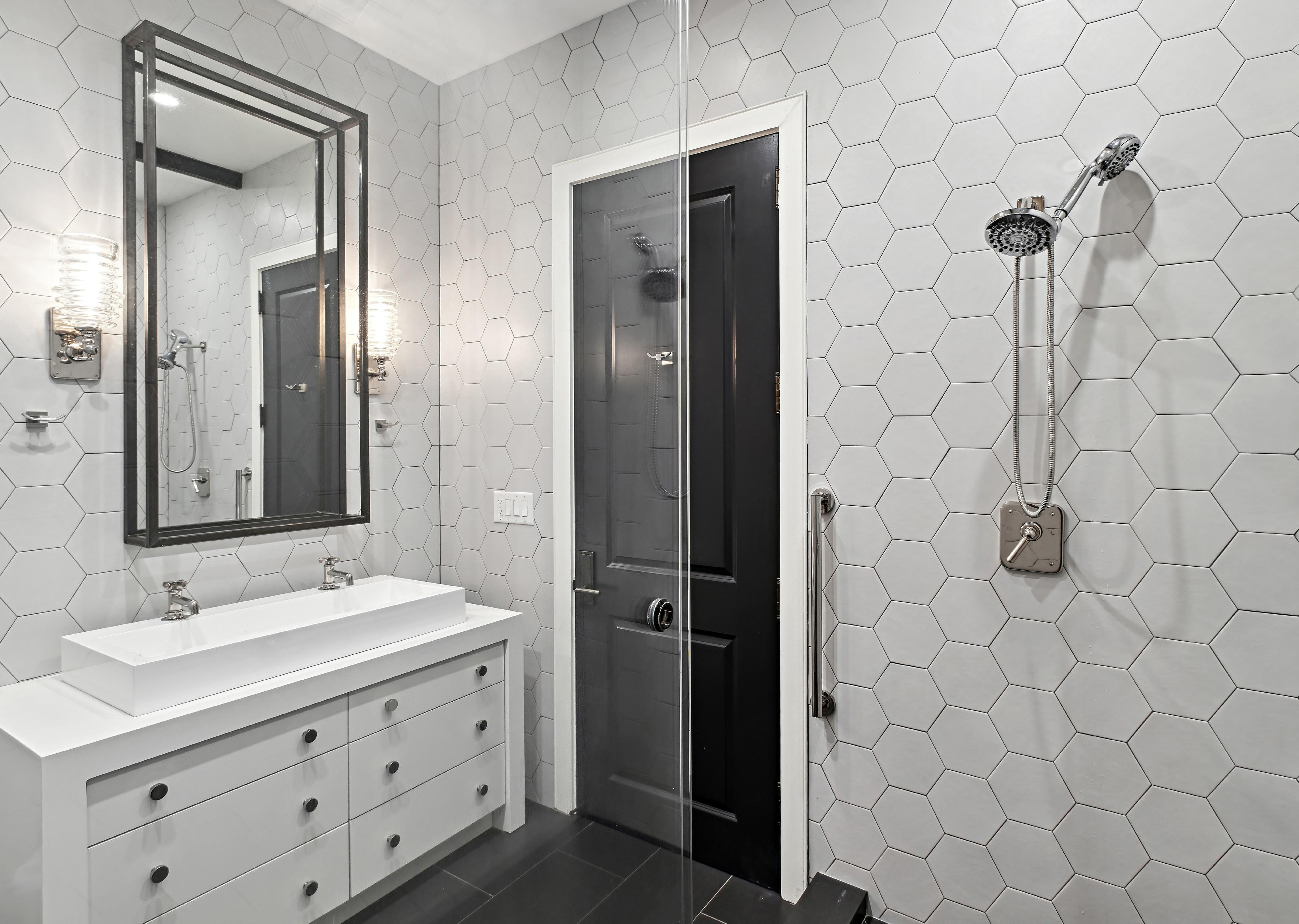 at the bespoke lighting, automatic window shades, custom metal doors, and specialty hardware that adorn this exquisite home.