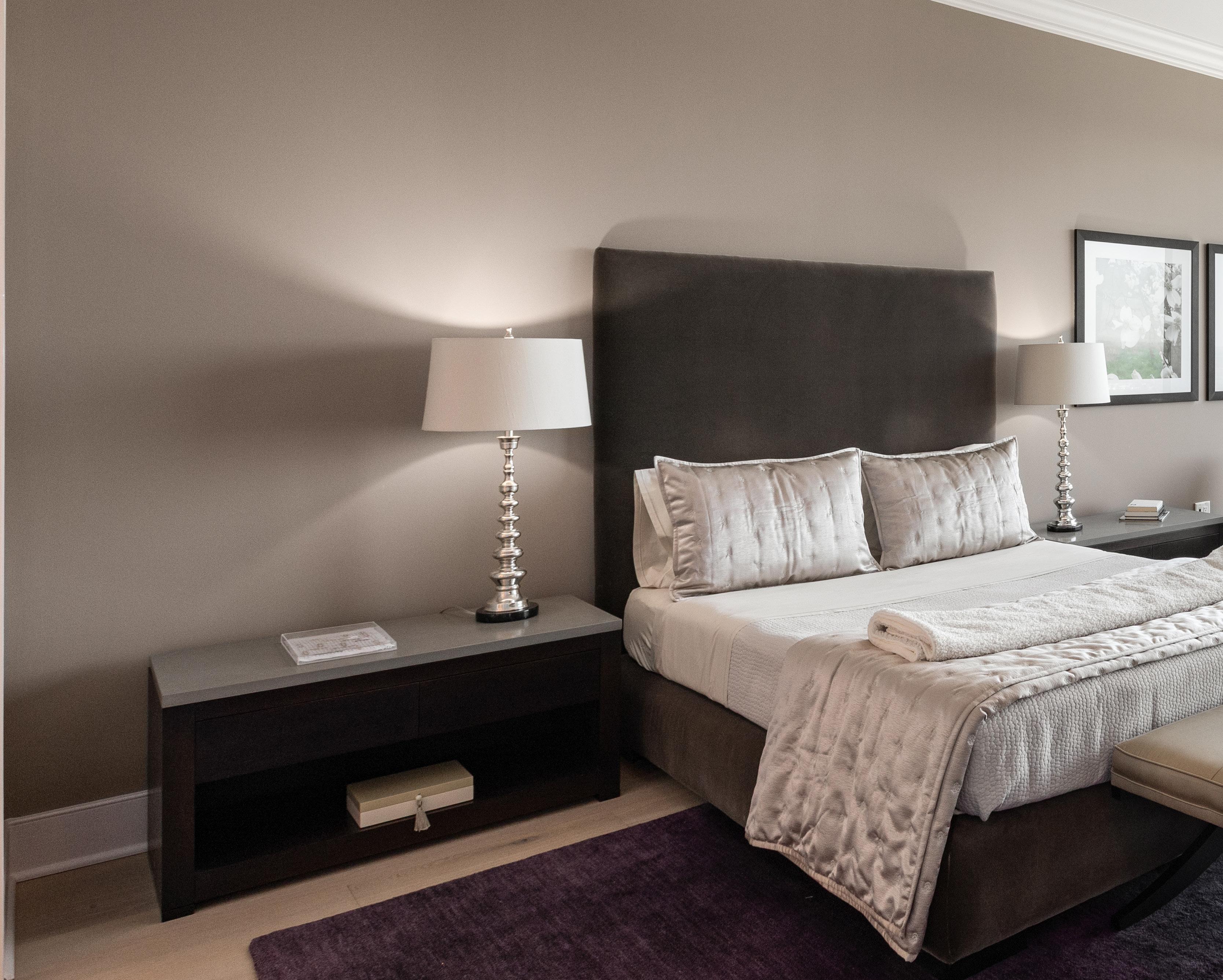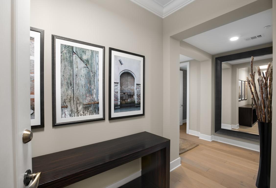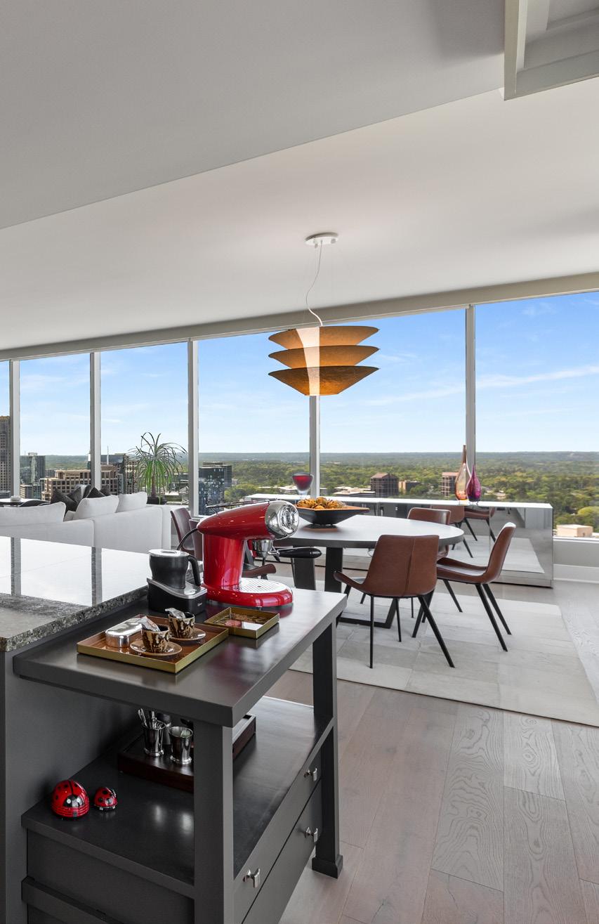 The owner’s suite enjoys views of the city skyline and is the perfect setting to relax with a spa-inspired ensuite bathroom that offers an expansive walk-in shower, double vanity, and large soaking tub.