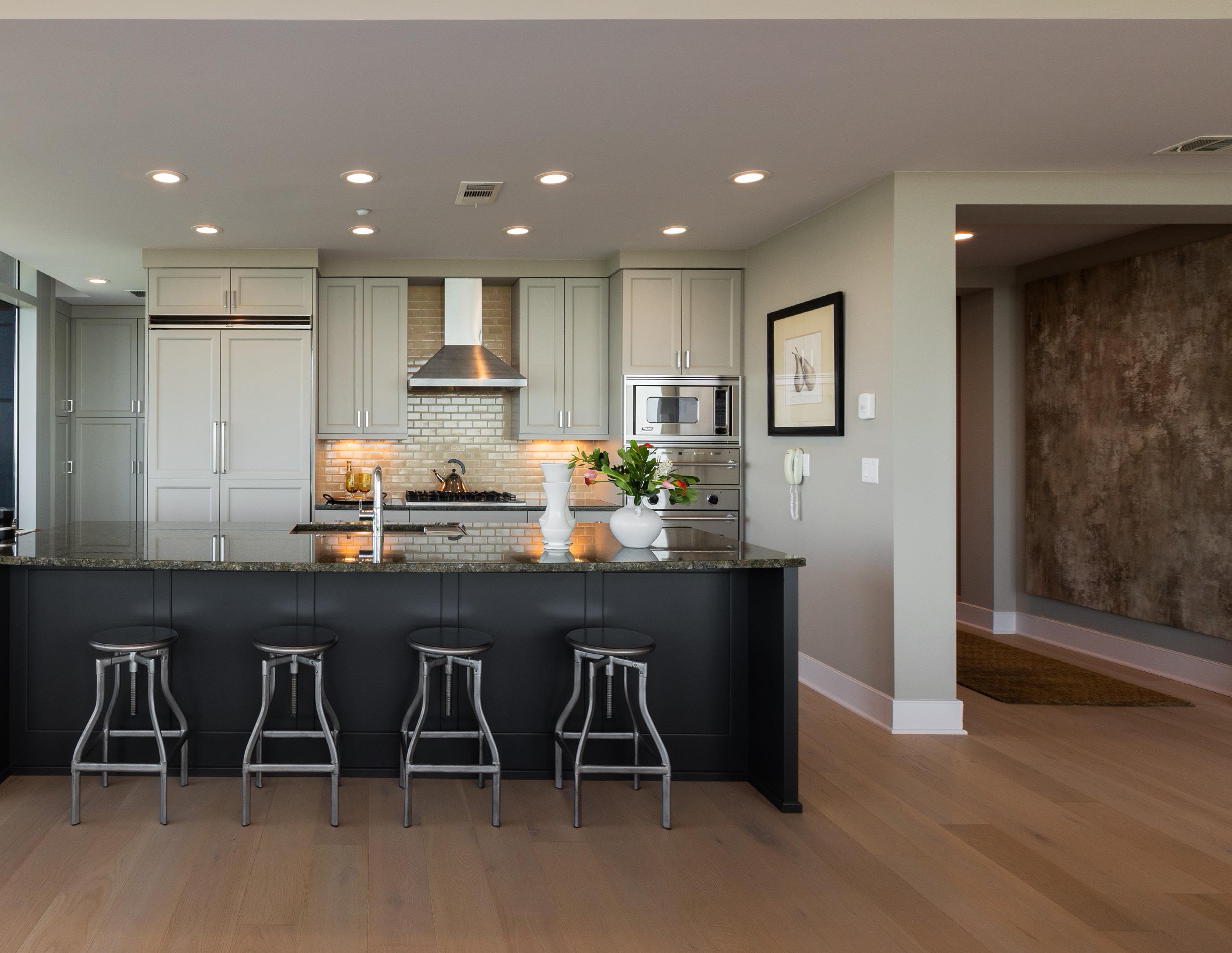 Your well-appointed open kitchen is fully outfitted with high-end Viking appliances and sets the stage for entertaining with a large island, beverage frig, coffee station, warming drawer and ample storage.