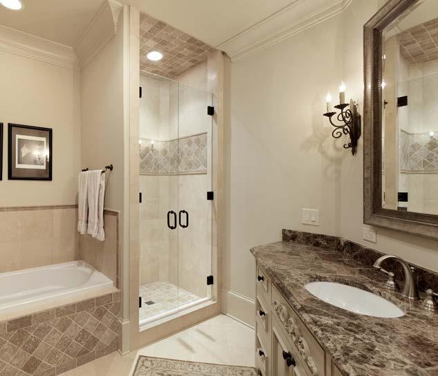 The primary suite features a large walk-in custom closet and spalike bathroom with a soaking tub, separate shower, and split vanities—creating individual spaces for privacy and convenience.